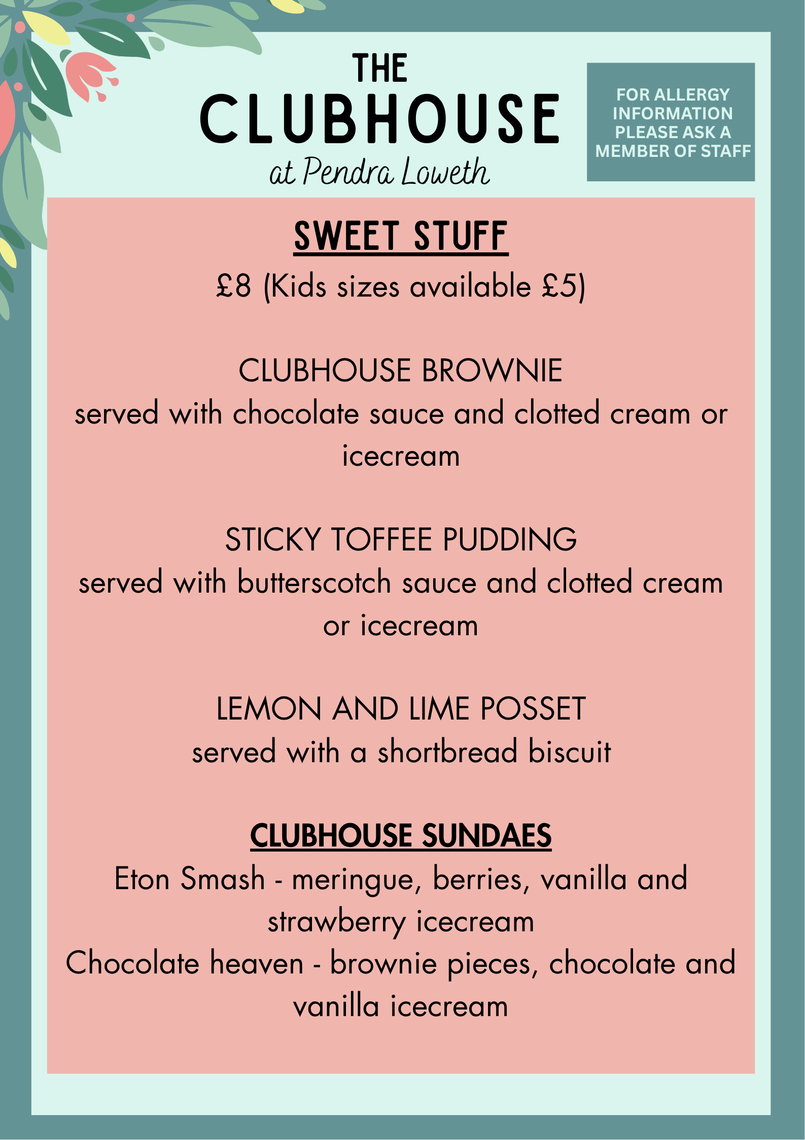 These are our current menus